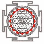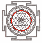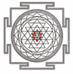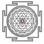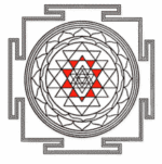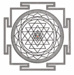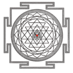 Le Shri yantra également connu sous le nom de shri chakra est aussi appelé la mère de tous les yantra car il contient tout les autres yantra, ce qui fait de lui l’un des plus célèbres. On le retrouve sous trois formes principales : plane, pyramidale (ou il représente le Mont Meru) et sphérique. Il est formé par la rencontre de neuf triangles dont cinq avec le sommet tourné vers le bas représentant Shakti et les quatre autres pointant vers le haut, représentant Shiva. Leurs croisements vont ensuite former 43 autres triangles. Ils sont entourés de deux cercles de pétales de lotus avec l’ensemble enfermé dans un cadre sécurisé, appelé la « citadelle de la terre ». Le tout est centré, scellé autour du bindu (point originel d’où la manifestation est issue).