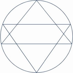 - Le shatkona « hexagramme » est composé de deux triangles entrelacés, l’un pointé vers le haut, l’autre vers le bas. Il contient les figures suivantes :